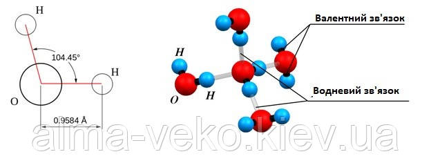 Міжнародні фахівці м'ясопереробної галузі запровадили спеціальний термін «water management» («управління водним компонентом»), як сукупність прийомів регулювання основних властивостей м'ясних систем шляхом впливу на водну складову. Нижче наведено схематичне зображення молекули води.