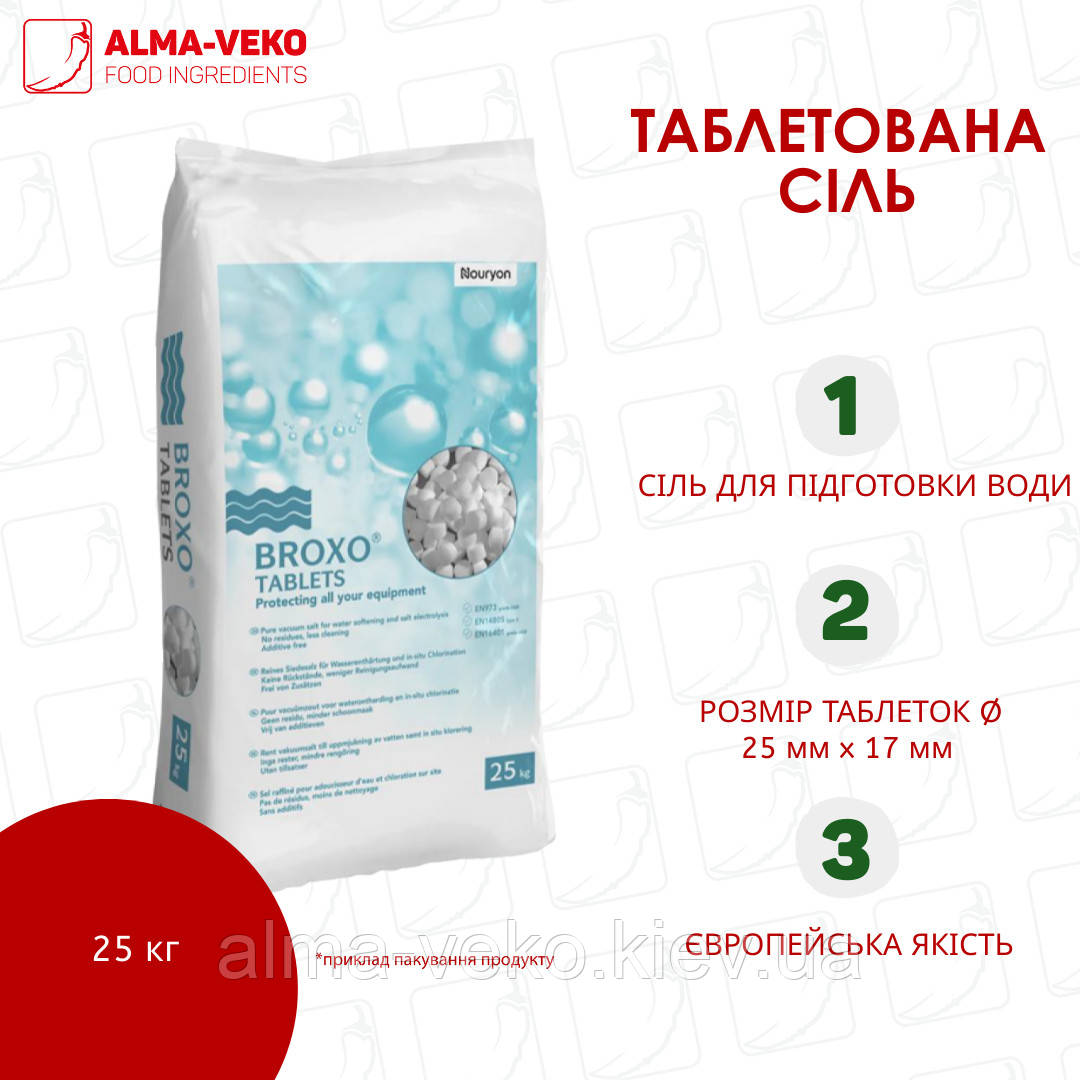 Таблетована сіль Broxo - пресована чиста висушена вакуумна сіль у формі таблеток високої твердості.